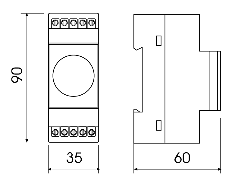 Dimensiones (A x P x H) mm 1DIN 17.5 x 60 x 128 – 2DIN 35 x 60 x 116 – 4DIN 70 x 60 x 116